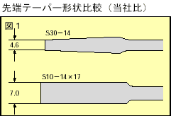 | ● 先端部をテーパー形状にし、従来品に比べ厚さを薄く、特に先端部分を薄くしました。(図1) |