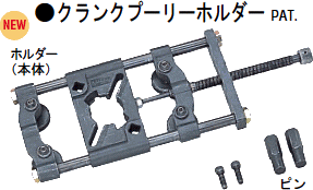 | ● | 回転クローをクランクプーリーの溝に掛けてグリップを締めこむだけ。 (クランクプーリーへの装着と同時にセンタースライダーの位置合わせが可能。) |
