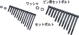 ピン 2コ ピン用セットボルト(六角穴付) M8 : 長さ25 2本 ワッシャ M8 : 2コ |